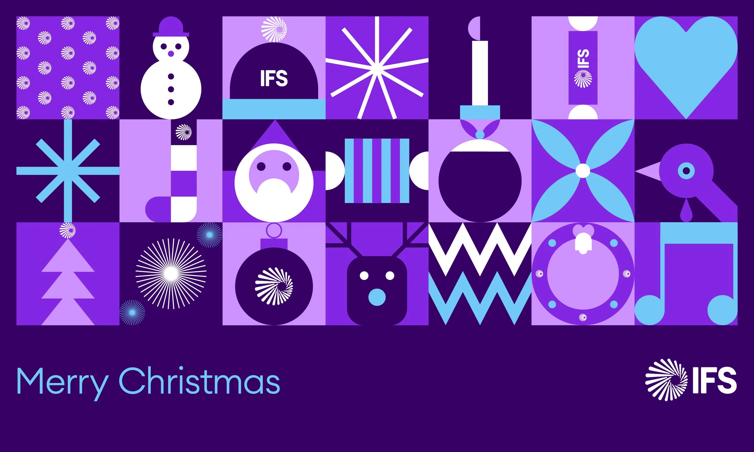 The Christmas social design for IFS is made up of twenty geometric illustrations relating to this holiday.
